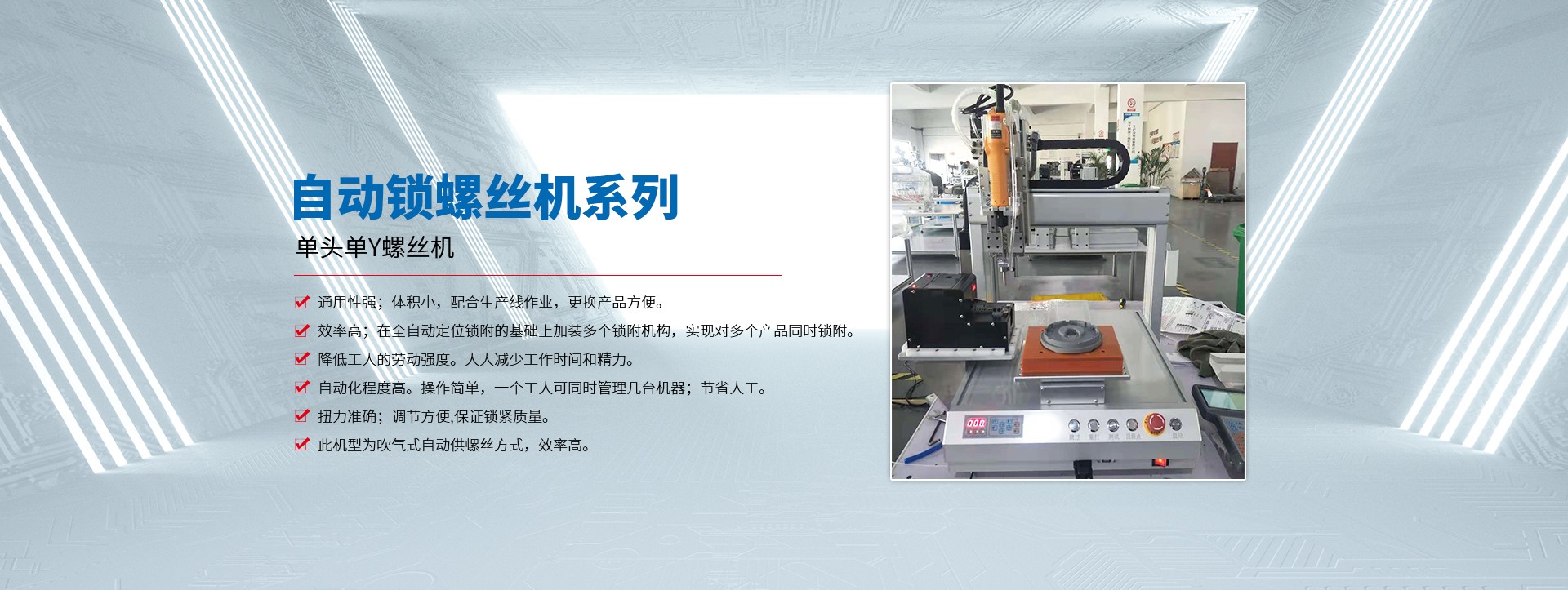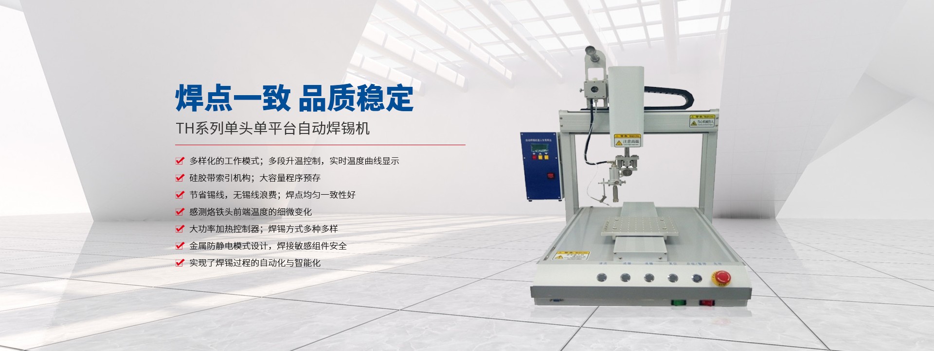 蘇州拓航機(jī)械設(shè)備有限公司成立于2016年,是一家集研發(fā)、制造、銷售及技術(shù)服務(wù)于一體的自動化設(shè)備生產(chǎn)廠家,主營產(chǎn)品有自動螺絲機(jī)、自動焊錫機(jī)、自動點膠機(jī)、自動灌膠機(jī) 脈沖熱壓機(jī),及各類型的非標(biāo)自動化設(shè)備。